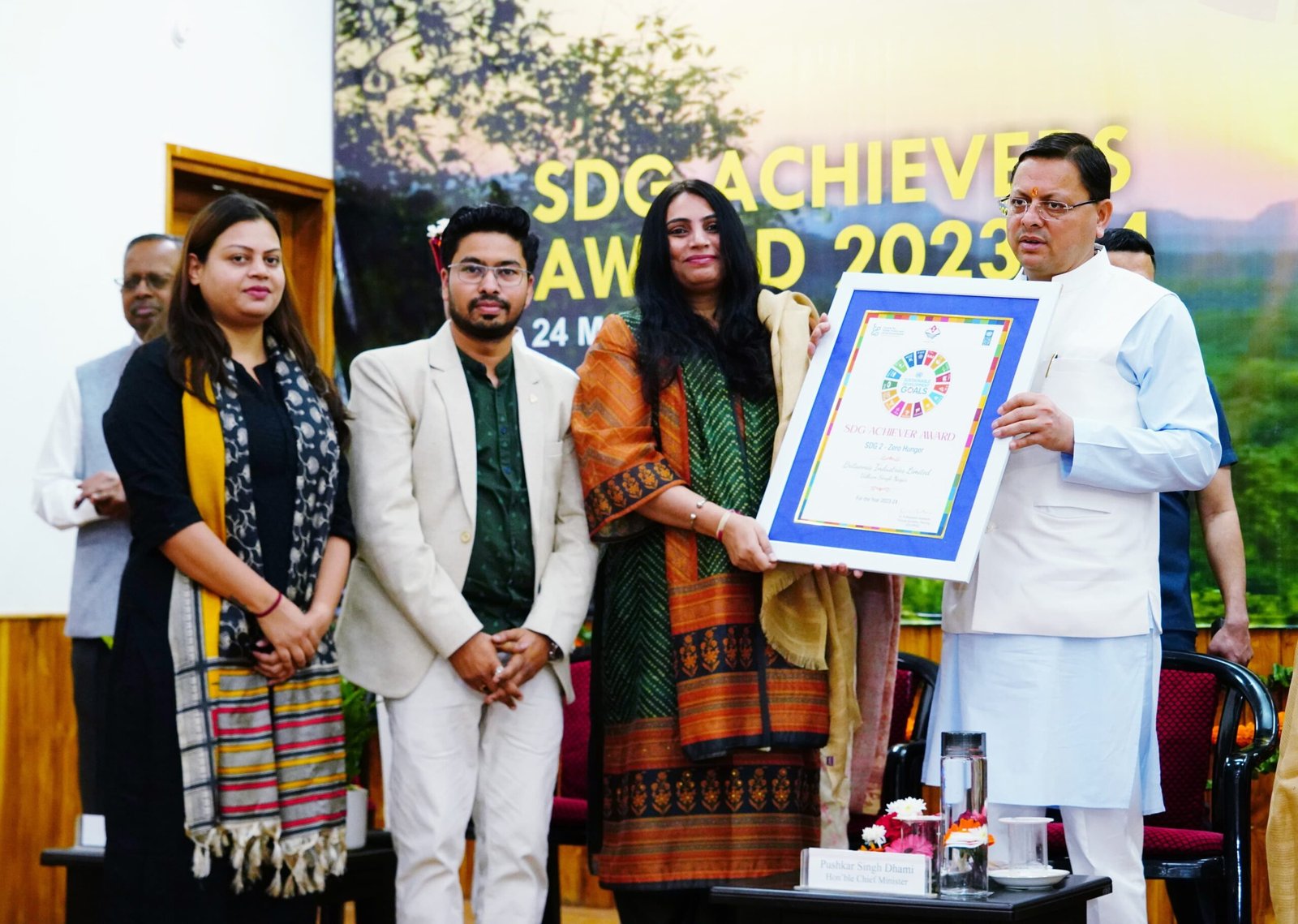 देहरादून। मुख्यमंत्री पुष्कर सिंह धामी ने सोमवार को मुख्यमंत्री आवास स्थित मुख्य सेवक सदन में एस.डी.जी एचीवर अवार्ड समारोह में 3 व्यक्तियों, 09 संस्थानों और 04 औद्योगिक प्रतिष्ठानों को एसडीजी अचीवर अवार्ड से सम्मानित किया। पिछले वर्ष के एसडीजी अवॉर्ड से पुरस्कृत व्यक्तियों और संस्थानों द्वारा की जा रही अभिनव पहलों की पुस्तक ‘अग्रगामी 2.0’ और एसडीजी इंडेक्स उत्तराखण्ड 2023-2024 का लोकार्पण भी इस अवसर पर मुख्यमंत्री ने किया। सी०पी०पी०जी०जी० द्वारा वर्ष 2023-24 के लिए जारी जनपदवार एस०डी०जी० रैंकिंग में नैनीताल जनपद ने प्रथम स्थान, देहरादून दूसरे और उत्तरकाशी तीसरे स्थान पर रहे, तीनों जनपदों के मुख्य विकास अधिकारी को मुख्यमंत्री द्वारा सम्मानित किया गया।