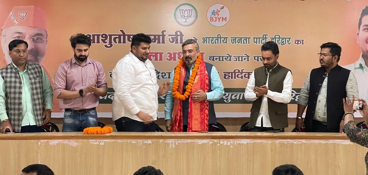 हरिद्वार। भाजपा युवा मोर्चा के पदाधिकारियों एवं कार्यकर्ताओं ने नवनियुक्त जिलाध्यक्ष आशुतोष शर्मा का भव्य स्वागत करते हुए उन्हें विजनकारी, कर्मठ कार्यकर्ता बताया। उन्होंने कहा कि आशुतोष शर्मा प्रधानमंत्री और मुख्यमंत्री पुष्कर सिंह धामी के विजन को साकार करने का काम करेंगे।