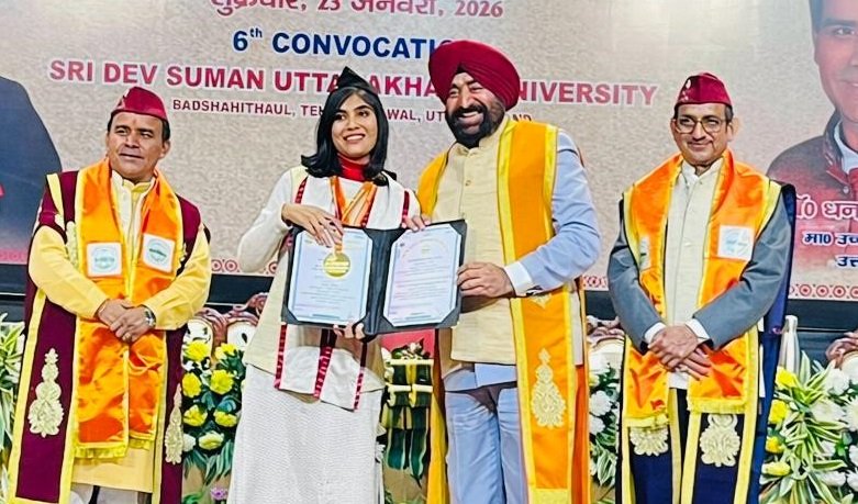 विश्वविद्यालय के ऋषिकेश कैंपस में आयोजित छठे दीक्षांत समारोह में महामहिम राज्यपाल लेफ्टिनेंट जनरल (सेवानिवृत्त) गुरमीत सिंह, उच्च शिक्षा मंत्री डॉ धन सिंह रावत एवं विश्वविद्यालय के कुलपति प्रो एनके जोशी के द्वारा छात्राओं को उपाधि व गोल्ड मैडल देकर सम्मानित किया गया। उन्होंने छात्र—छात्राओं के उज्जवल भविष्य की कामना की।