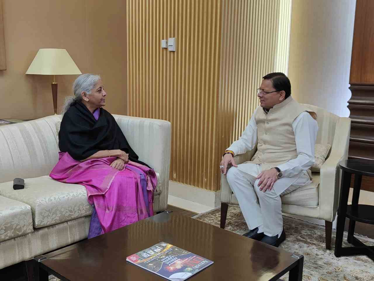 मुख्यमंत्री पुष्कर सिंह धामी ने वित्त मंत्री निर्मला सीतरमण से गुरूवार शाम को नई दिल्ली में मुलाकात की। इस दौरान उन्होंने वित्त मंत्री के साथ कई मुद्दों पर चर्चा की।
